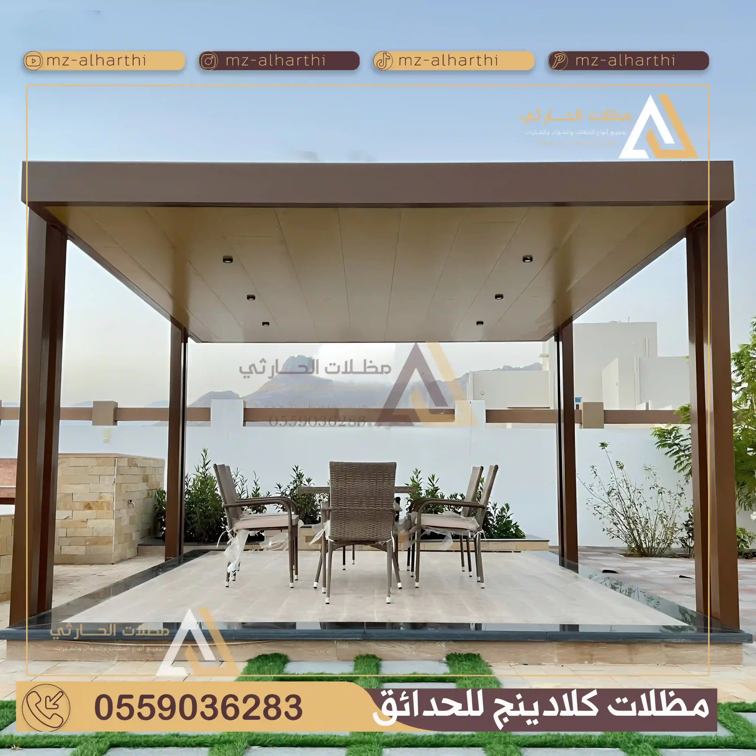 تعتبر الحدائق مكانا أساسيا في كل منزل و فيله و مع مظلات حدائق كلادينج الرياض فأنت تمنح حديقتك جمالا إضافيا و راحة مثالية في أوقات الجلوس فيها و ذلك حيث توفر لك هذه المظلات ظلا رائعا يحميك من حرارة الشمس و كما تضيف لمسة فاخره و ذلك بفضل شكل الكلادينج الجميل و الفاخر و ذلك سواء أردت استراحة صيفية أو ركنا لتناول القهوة في الحديقة، نحن نضمن لك مظلات كلادينج خارجية الرياض تجمع بين الذوق والأداء، اتصل بنا و إحصل على الراحة و الرفاهيه في حديقتك: