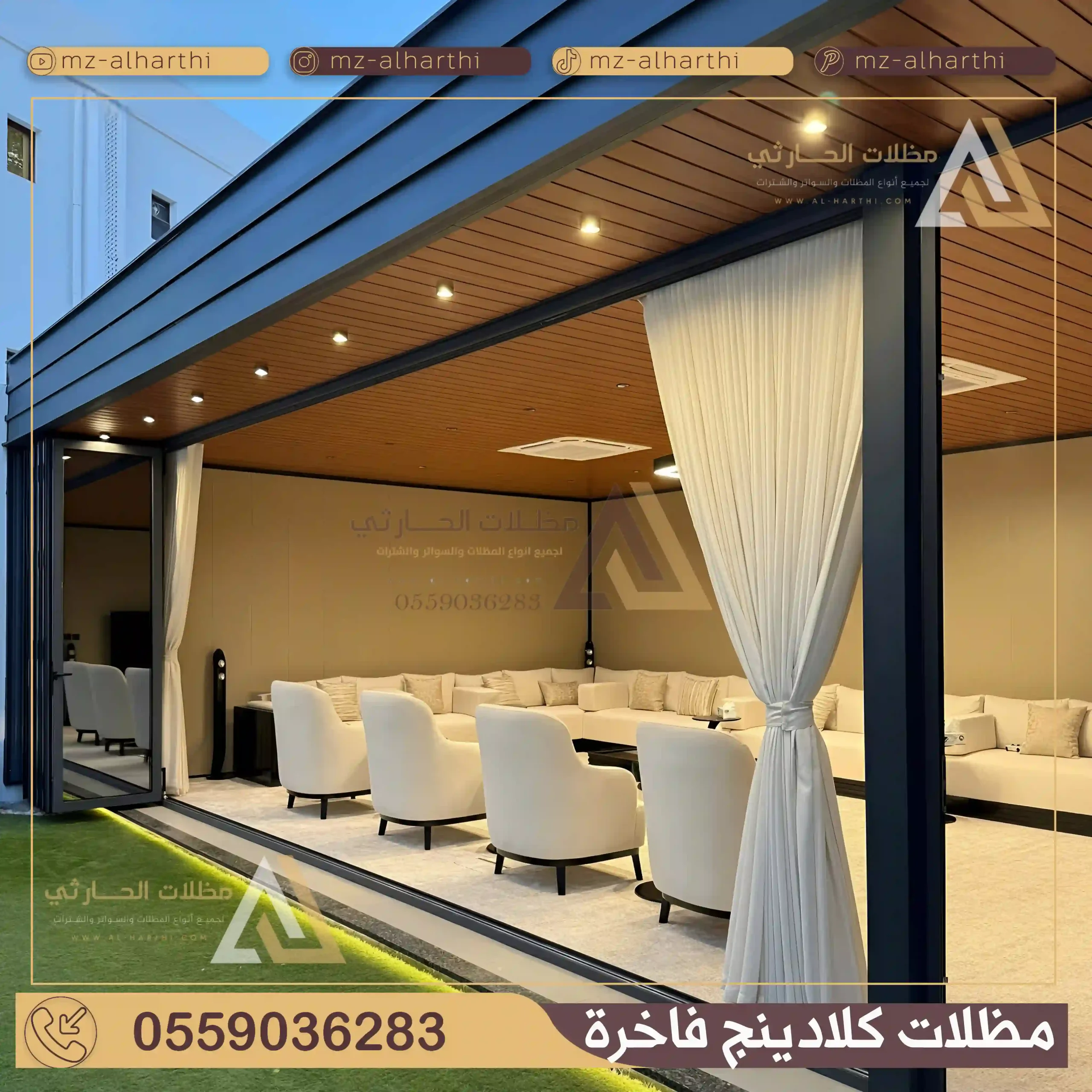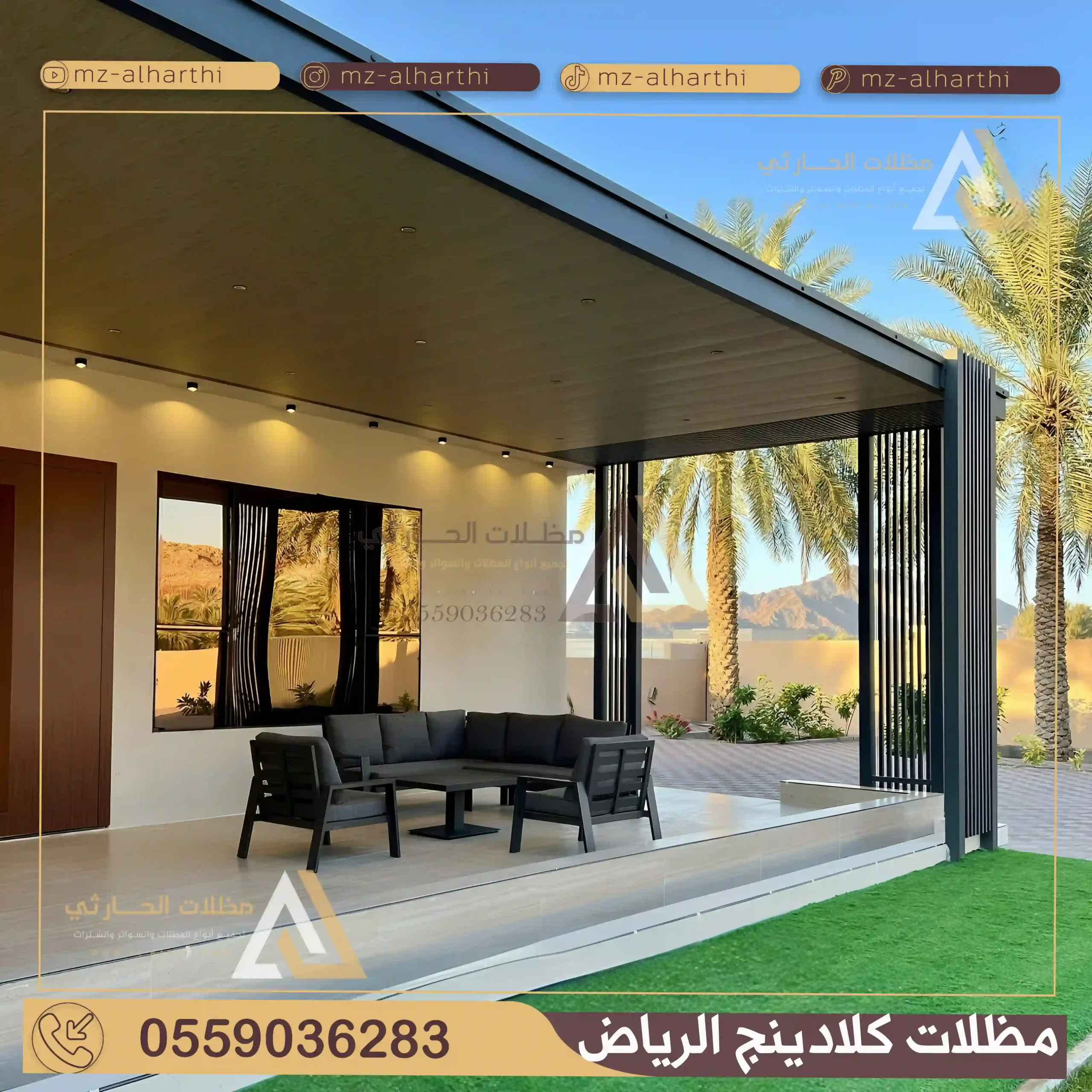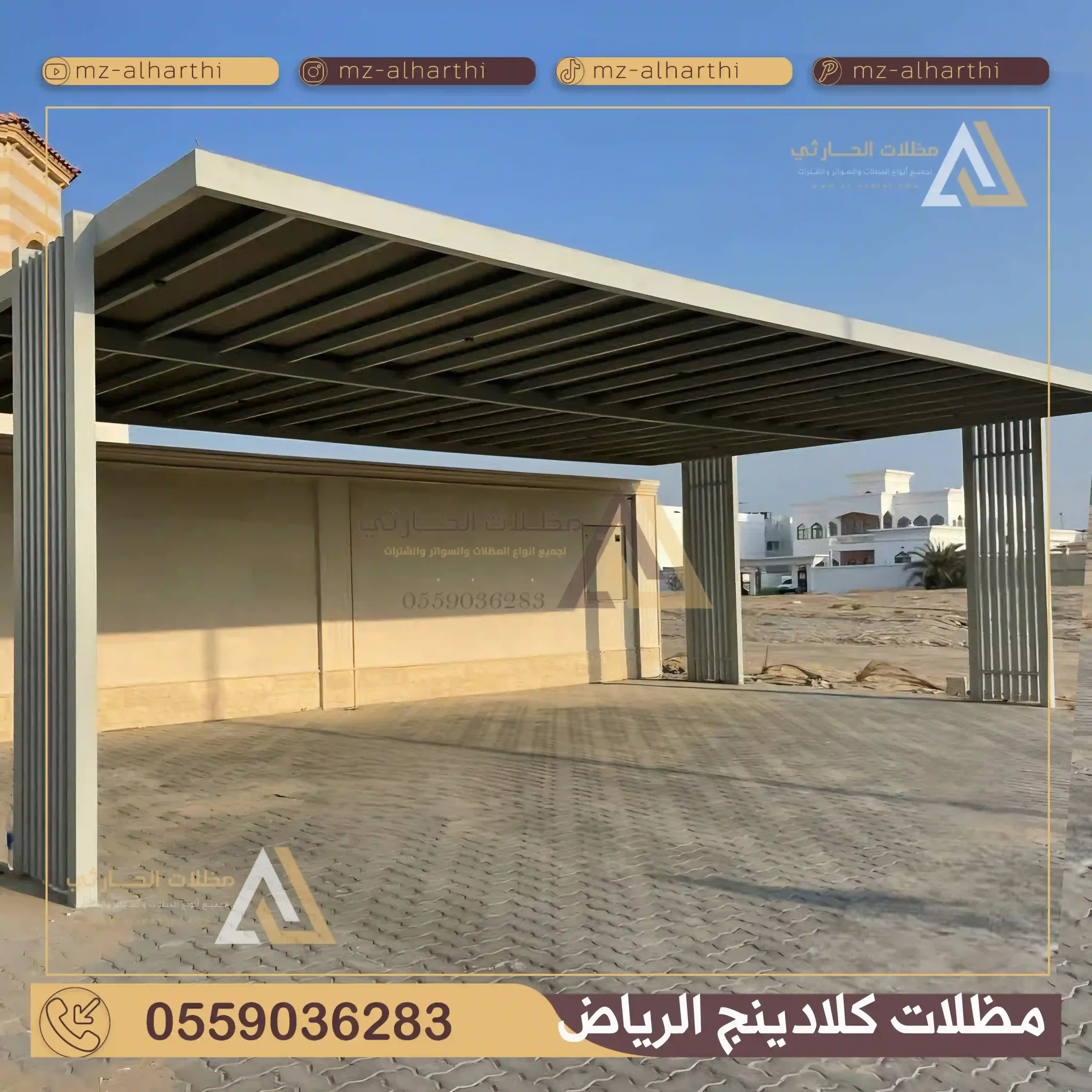 في عاصمة الابداع و الجمال العمراني مدينة الرياض يبرز الحاجه الى الاهتمام بتصاميم المظلات الحديثه كجزء لا يتجزء من الفخامه المعماريه و يأتي تركيب مظلات كلادينج الرياض كخيار مثالي يجمع بين المظهر العصري و المواصفات القوية و التي تضمن حماية فعالة من حرارة الشمس و الضروف الجوية المختلفه و في الوقت الحالي أصبحت مظلات كلادينج خارجية الرياض من العلامات الفارقه في تصميم المنازل و الفلل و المرافق العامه و لهذا فإذا كنت تبحث عن مظلة تضيف لمسة أناقة عملية لمنزلك أو شركتك، تواصل معنا الآن: