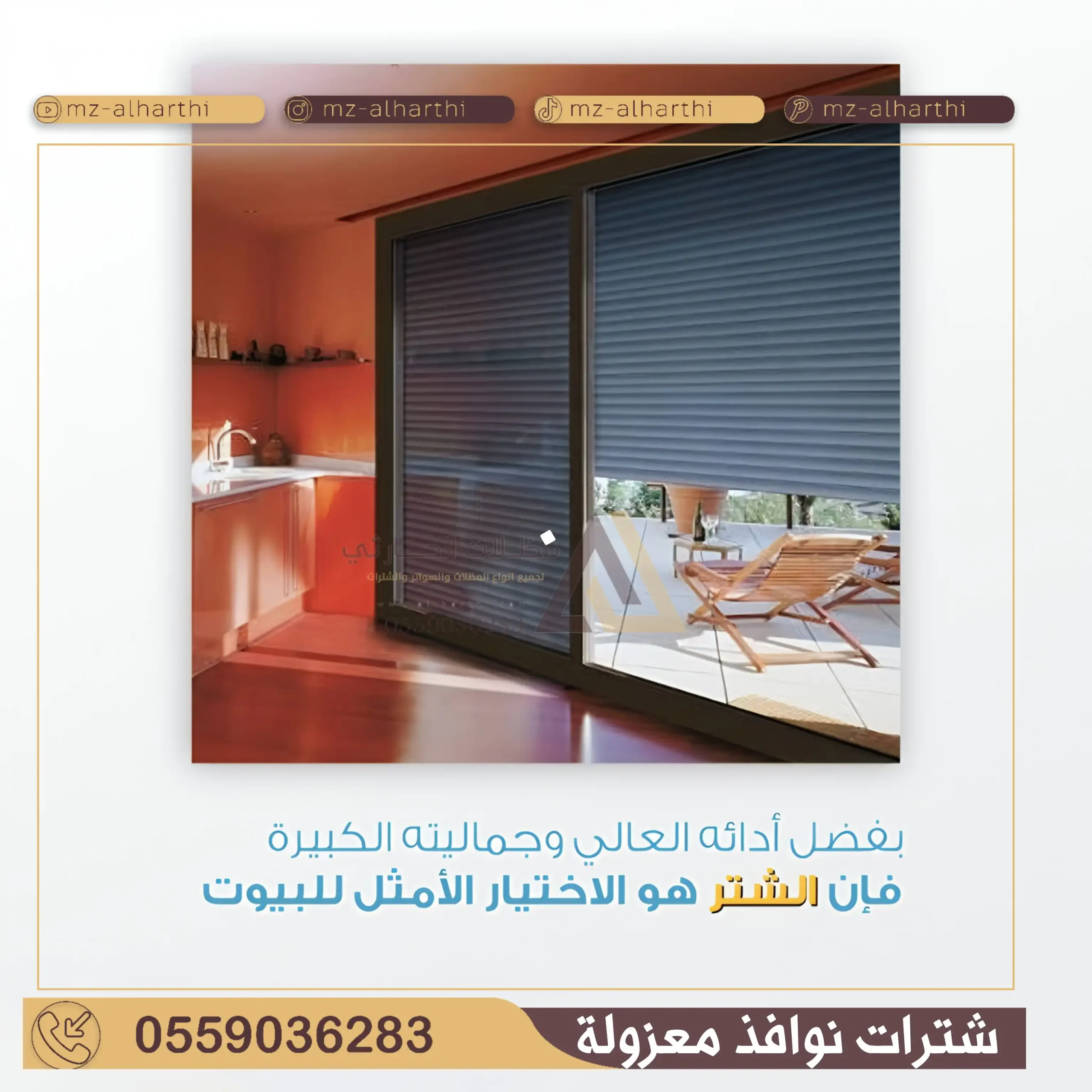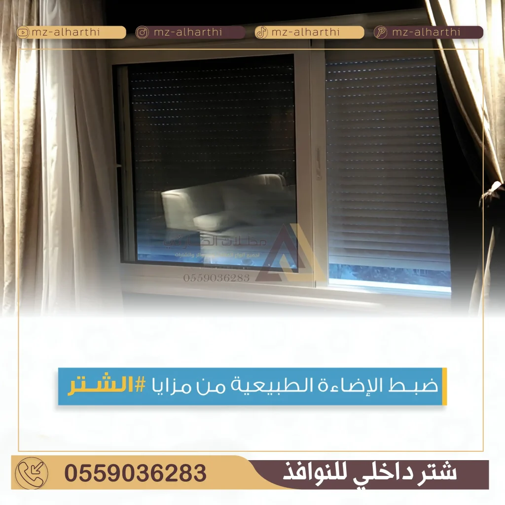 | داخلي(خشبي أو بلاستيكي) | يستخدم داخل الغرف لتعديل الضوء والخصوصية بأسلوب ديكوري |