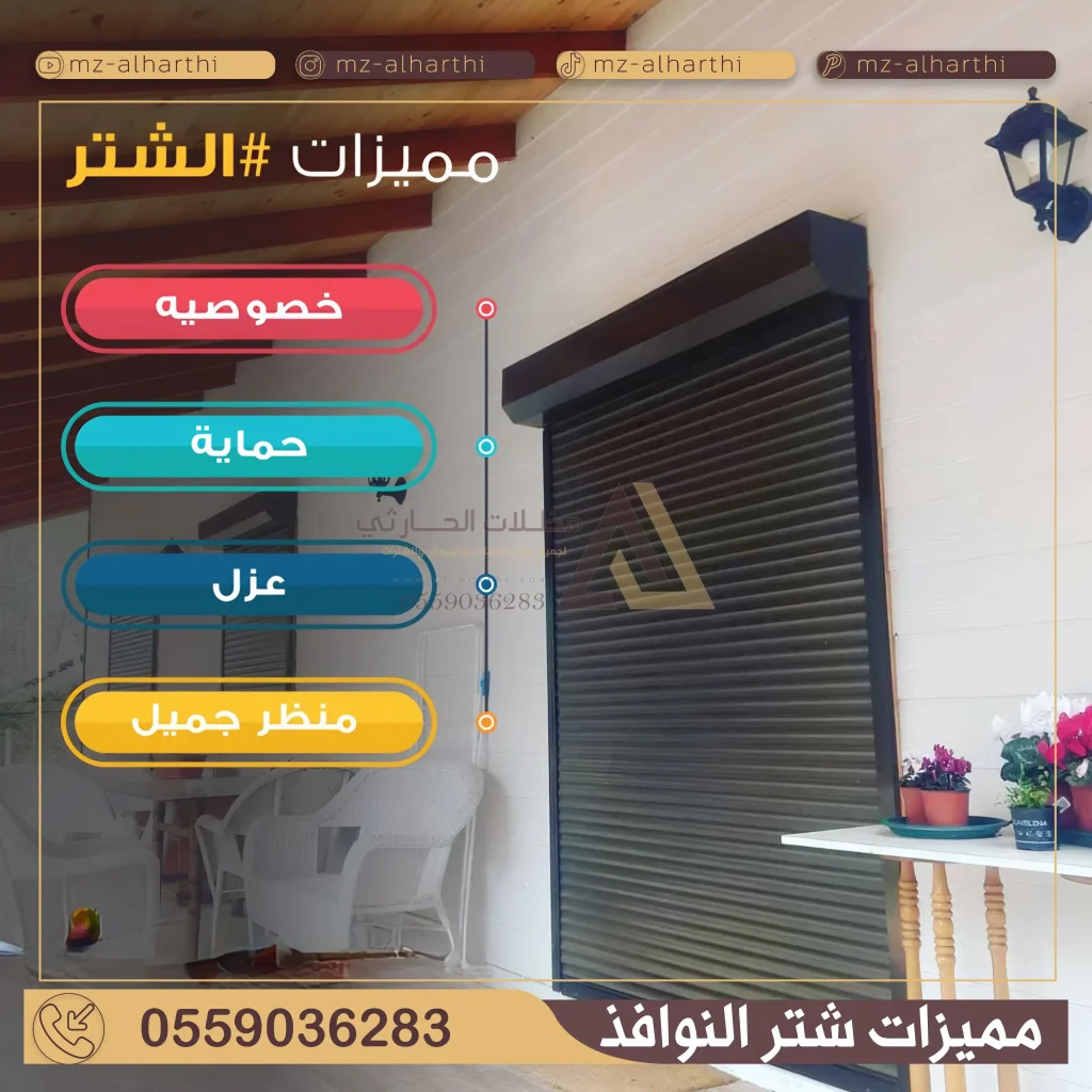 بشكل عام إن تركيب شتر نوافذ الرياض أمر مهم لتوفير الخصوصية والأمان لجميع الأماكن، و شتر شباك خارجي بالرياض بشكل خاص للمناطق الحارة أو المعرضة للغبار والرياح. وسواء كنت ستختار شتر داخلي أو خارجي فإنك بكل الأحوال ستحصل على: