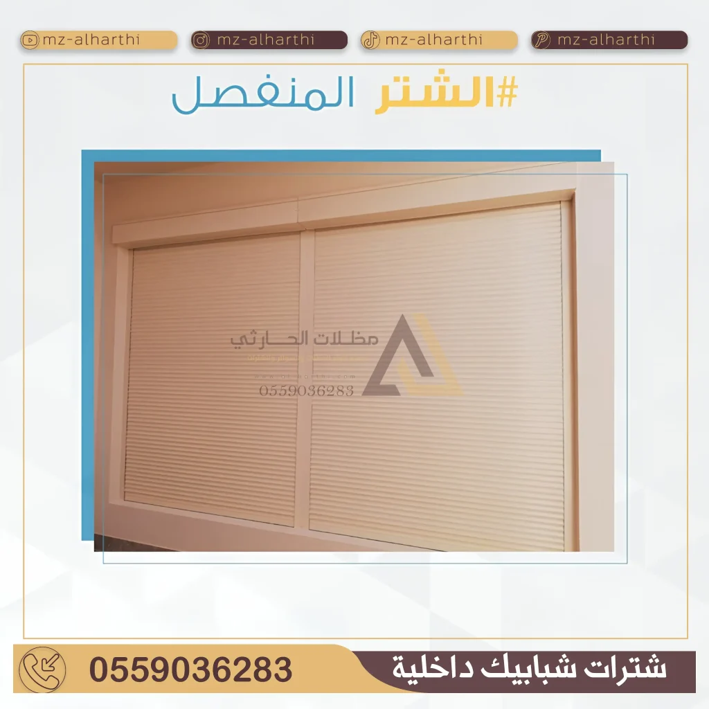 | داخلي(خشبي أو بلاستيكي) | يستخدم داخل الغرف لتعديل الضوء والخصوصية بأسلوب ديكوري |